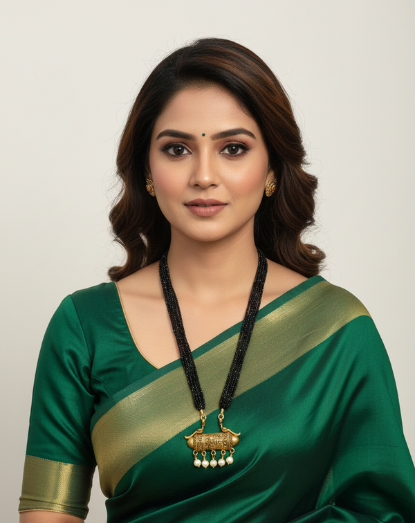 An Antique Gold-Plated Statement Pendant Step into a legacy of craftsmanship with this magnificent antique-style pendant. Inspired by traditional South Indian temple jewelry, this piece is a testament to timeless artistry and devotion. Key Features:...